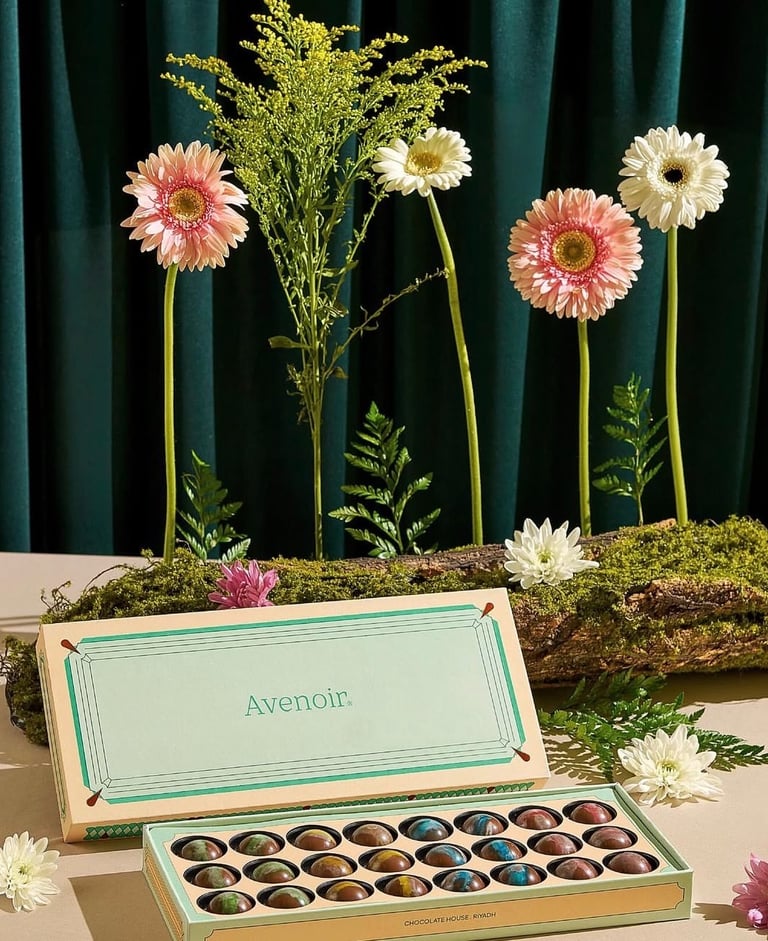 Avenoir Chocolate is defined by luxury, refined details, and a contemporary connection to nature.The Art direction emerged naturally from the brand’s existing identity and packaging, proving that strong concepts often begin by closely observing what is already there.